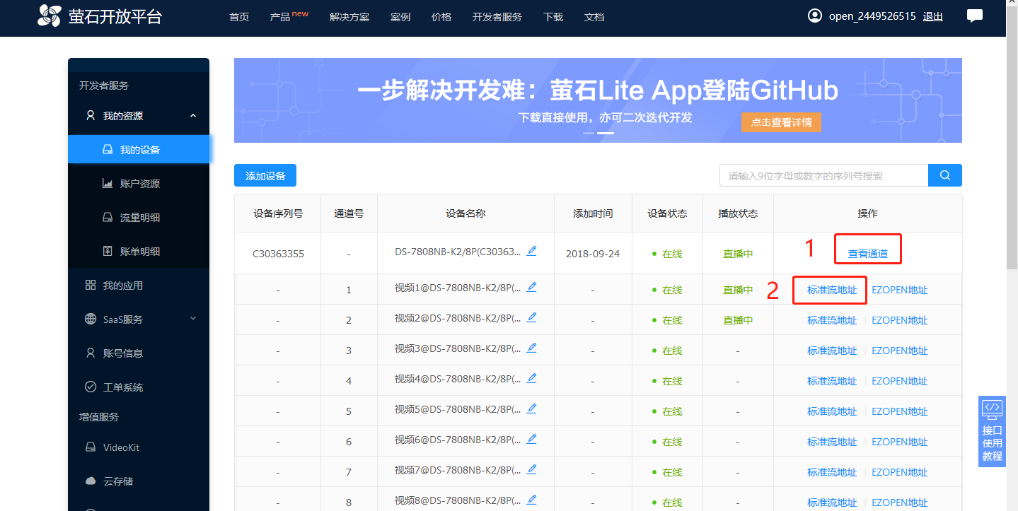 1.    登录萤石开放平台